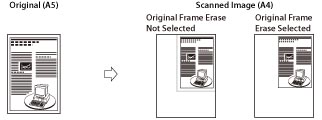 This mode deletes the dark borders and frame lines that appear around the scanned image if the original is smaller than the specified paper size. You can also use this mode to create a blank border around the edge of the scanned image.