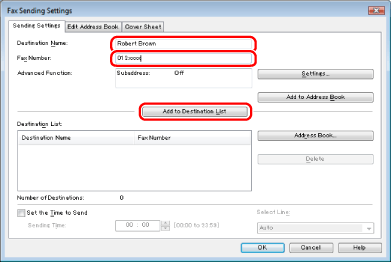 If you have selected [Reenter Fax Number before adding Destination to [Destination List]] in the [Security Settings] dialog box of the [Special] sheet, the [Confirm Password] dialog box is displayed when you click [Add to Destination List]. For details, see the online help. (See the "Viewing the Online Help.")
