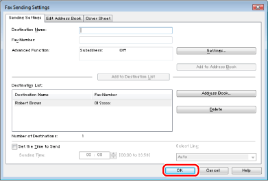 The number of destinations that you can send to at one time depends on the conditions under which the cover sheet has been attached. For details, view the online help. (See "Viewing the Online Help.")