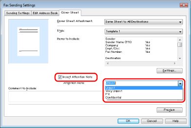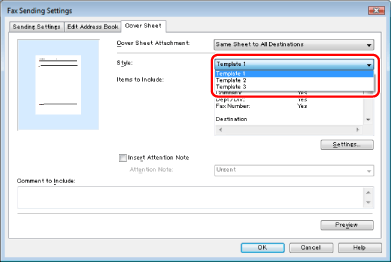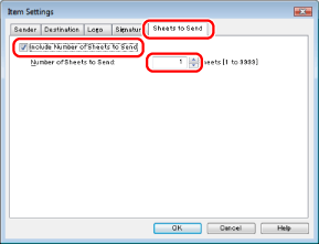 If you want to include the number of sheets that you are going to send in the cover sheet, click [Sheets to Send] → select [Include Number of Sheets to Send] → specify the number of sheets.