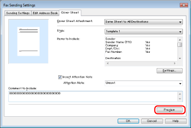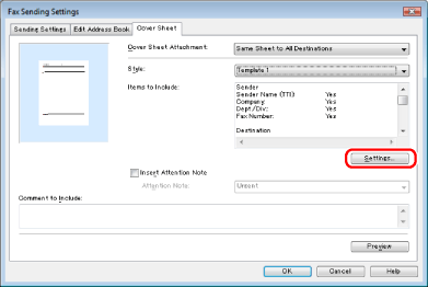 If you want to specify the items to include on the cover sheet, click [Settings].