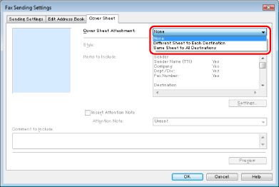 Select an option for attaching the cover sheet from [Cover Sheet Attachment].