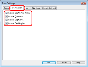 Click [Destination] → Select items you want to print on the cover sheet regarding the destination.