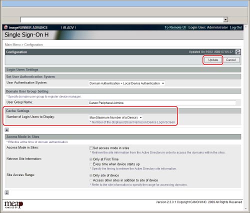 The Number of Login Users to Display setting can be set not only by the Local Device Authentication administrator, but also by the Domain Authentication administrator.