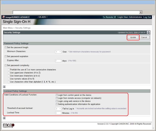 When the lockout function is set for SSO-H, you can set the length of time that the login service is stopped for a user.
