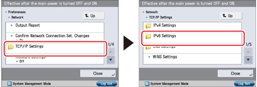 Press [TCP/IP Settings] → [IPv6 Settings].
