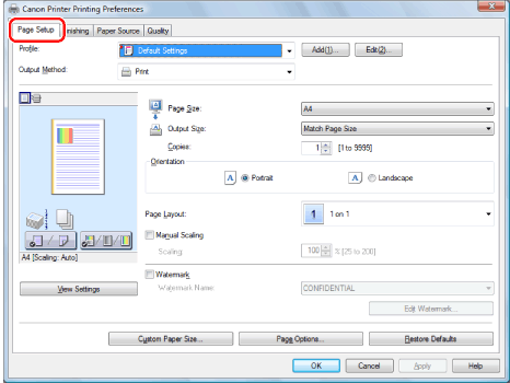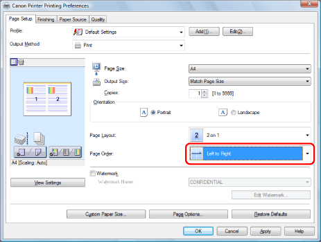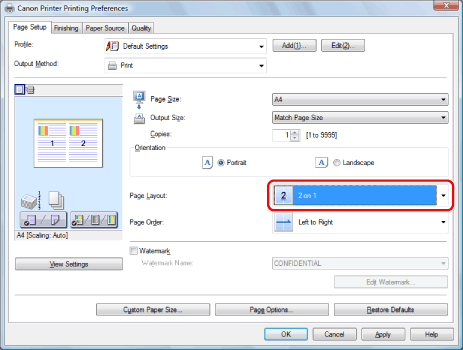 If you cannot select the options for [Page Layout], display the [Device Settings] sheet, and then select [Auto] or [Enabled] from [Spooling at Host]. For instructions on how to display the [Device Settings] sheet, see "Setting the Printer Options."