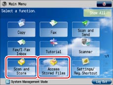 Press [Scan and Store] or [Access Stored Files] on the Main Menu screen.