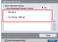 To set a background density that differs from the most even secure watermark image in the standard value sample print, it is necessary to adjust [Latent Area Density] to a density close to the background density.