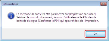 Une boîte de dialogue demandant de confirmer le passage en mode Impression sécurisée apparaît.