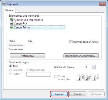 Cliquer sur [OK] pour fermer l'écran du pilote d'imprimante → cliquer sur [Imprimer].