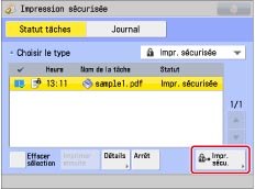 Sélectionner la tâche sécurisée à imprimer → appuyer sur [Impr. sécu].