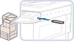 Il est possible d'enregistrer des documents lus par la machine sur une mémoire USB (support mémoire) connectée au port USB de la machine. Il est également possible d'imprimer les fichiers enregistrés depuis la machine.