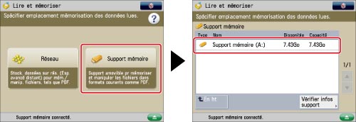 Appuyer sur [Support mémoire] → sélectionner le support mémoire souhaité.
