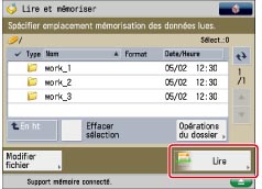 Une fois la lecture terminée, les données lues sont mémorisées sur le support mémoire sélectionné.
