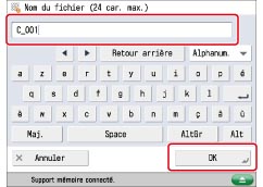 Suivre la procédure ci-dessous pour entrer le nom du fichier.