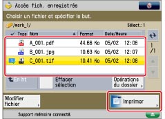 Impression des fichiers mémorisés sur un support mémoire
