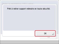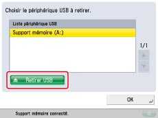 Sélectionner le support mémoire à retirer → appuyer sur [Retirer USB].