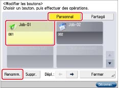 Sélectionner [Personnel] → sélectionner le bouton Personnel à changer → appuyer sur [Renomm.].