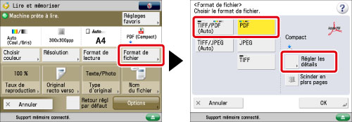 Il est impossible de spécifier les réglages si [Formater PDF en PDF/A] est réglé sur "Oui". (Voir "Formatage de PDF en PDF/A".)