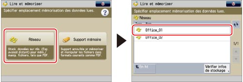 Appuyer sur [Réseau] → sélectionner l'emplacement mémoire souhaité.