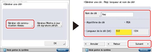 Après avoir appuyé sur [Générer une clé], il est impossible d'utiliser les clés tant qu'aucune biclé n'a été générée et enregistrée.