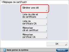 Il est impossible de supprimer ou de modifier une biclé nécessaire à une signature de périphérique dans l'écran Liste clés et certif. pour cette machine.