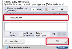 Si l'un des énoncés suivants peut s'appliquer à la machine du destinataire, un message s'affiche indiquant que les informations concernant le périphérique à enregistrer n'ont pas pu être récupérées et demandant à l'utilisateur s'il souhaite l'enregistrer en tant que destinataire. et demandant à l'utilisateur s'il souhaite l'enregistrer en tant que destinataire. Si [Oui] est sélectionné, <Régl. pouvant être distribués> dans l'écran Détails reste vide.