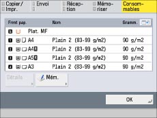 Pour plus d'informations sur la gestion du type de papier, voir "Mémorisation/modification des types de papier personnalisés".