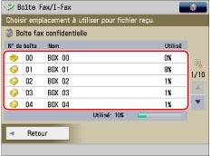 Il est conseillé de supprimer les documents et les données d'image inutiles de la boîte Fax/I-Fax afin de libérer de la place pour le stockage de nouveaux documents.