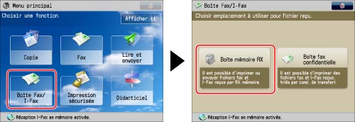 Lorsque <Verrouillage mémoire fax> et/ou <Verrouillage mémoire I-Fax> est réglé sur "Non", les documents transmis par la fonction Fax/I-Fax sont imprimés automatiquement puis effacés de la boîte mémoire RX.
