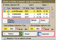 Seuls les documents mémorisés dont les réglages sont les mêmes que lors de la réception peuvent être imprimés.