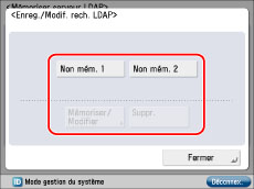 Appuyer sur [Définir destinataire] → [Mémoriser serveur LDAP] → [Enreg./Modif. rech. LDAP].