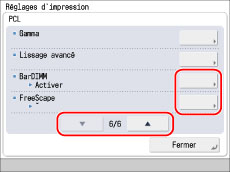 Lorsque la fonction d'impression des codes à barres est activée, [BarDIMM] et [FreeScape] sont affichés dans la page de configuration (dans l'écran Réglages/Enregistrement).