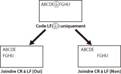 Cette option permet de définir si un retour chariot (CR, pour carriage return) doit intervenir à réception du code de saut de ligne (LF, pour line feed).