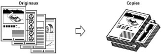 Si l'option [Tri séquentiel auto.] est réglée sur "Oui", le mode Tri séquentiel ou Tri séquentiel décalé est automatiquement activé lorsque les originaux sont mis en place dans le chargeur. (Voir "Activation du tri séquentiel automatique".)