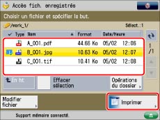 Si on sélectionne un fichier PDF, les cassettes dont l'option [Activer/désactiver choix auto cassette] est réglée sur "Non" ne sont pas choisies comme source de papier lorsque [Auto] est sélectionné sur l'écran <Choisir papier>.