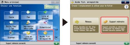 Appuyer sur [Accès fich. enregistrés] → [Support mémoire].