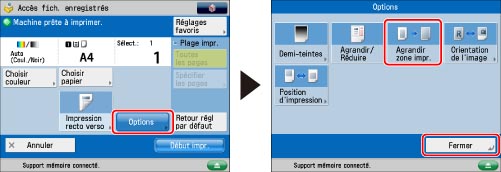 Appuyer sur [Options] → [Agrandir zone impr.] → [Fermer].