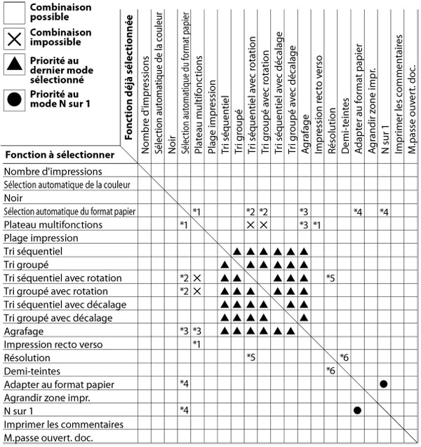 *2 Il est impossible de combiner ces modes lorsqu'un papier de format autre que "Auto" est sélectionné.