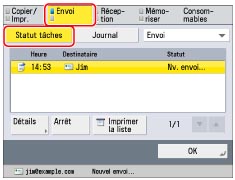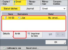 Il est également possible d'annuler une tâche d'envoi en cours de lecture en appuyant sur