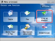 Appuyer sur [Lire et envoyer] → définir le destinataire et les réglages d'envoi à mémoriser.