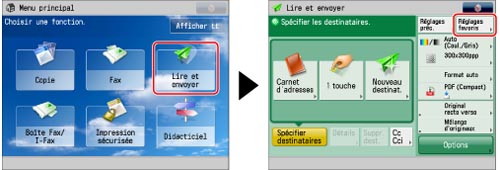 Appuyer sur [Lire et envoyer] → [Réglages favoris].