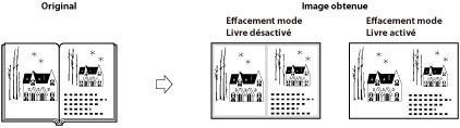 Ce mode permet d'effacer les ombres, les contours et les marques de reliure qui peuvent apparaître lors de la lecture de certains types d'originaux.