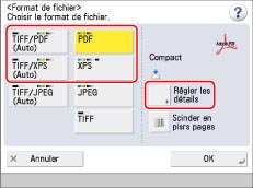Si [Formater PDF en PDF/A] est réglé sur "Oui", il est impossible de définir l'option OCR (rech. texte poss.). (Voir "Formatage de PDF en PDF/A".)