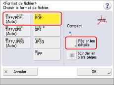 Si [Formater PDF en PDF/A] est réglé sur "Oui", voir "Formatage de PDF en PDF/A".