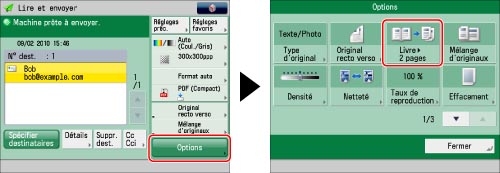 Spécifier le destinataire → appuyer sur [Options] → [Livre