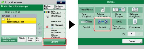 Spécifier le destinataire → appuyer sur [Options] → [Netteté].