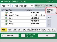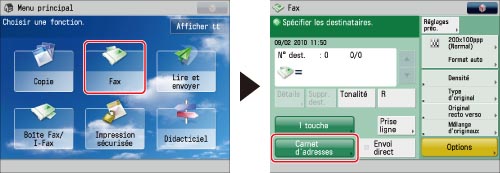 Appuyer sur [Fax] → [Carnet d'adresses].