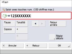 Pour savoir comment exécuter cette opération à partir de l'écran Fax, voir "Ecran des fonctions de base de la fonction Fax" dans